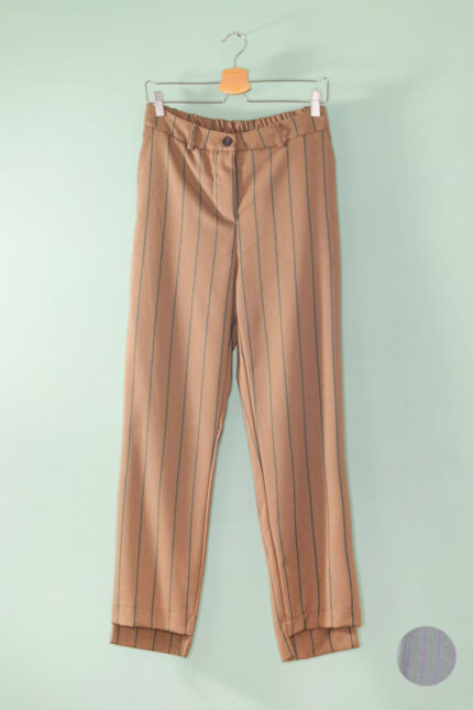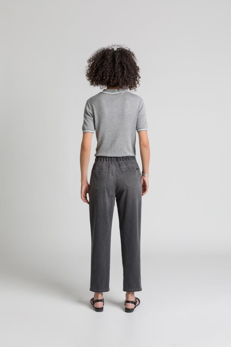 Descrizione capo: Carrot con elastico in vita, alto dietro la schiena, tessuto con trama particolarmente morbida e piacevole al tatto. Look anni ’80, vita alta e morbido sui fianchi. Particolarmente femminile.