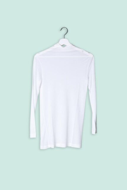 Il modello boxy crea una silhouette rilassata e moderna, mentre lo scollo a barchetta valorizza delicatamente la linea delle spalle, aggiungendo un tocco femminile e sofisticato. Le maniche lunghe e il taglio pulito rendono il capo versatile e facile da abbinare.