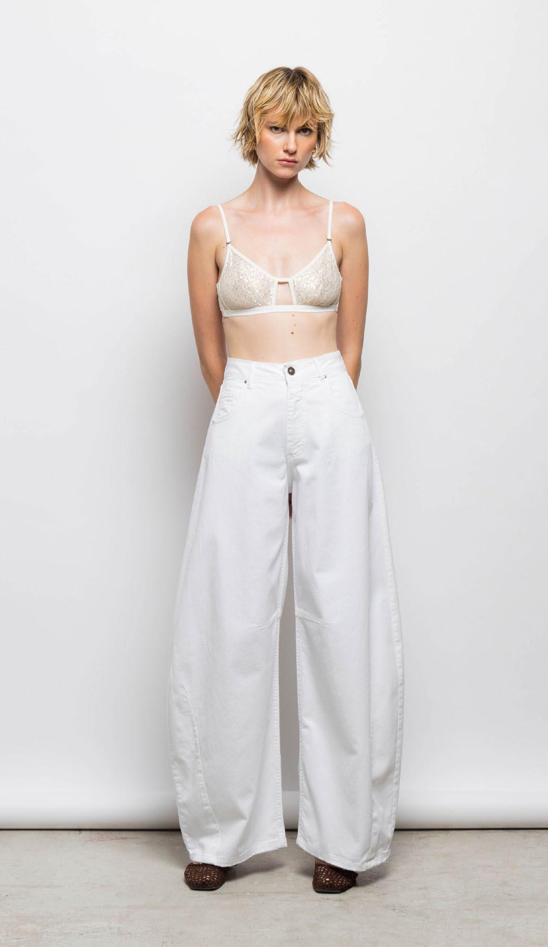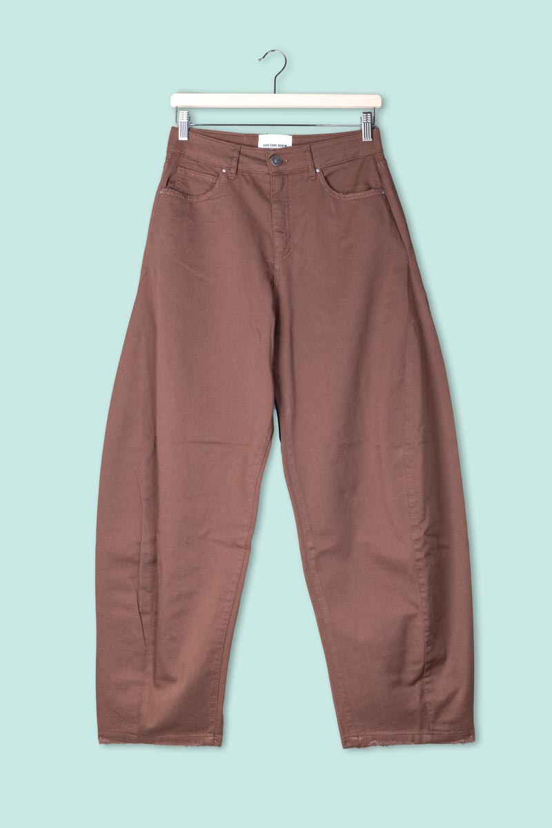 Pantalone balloon in denim dal design contemporaneo e distintivo. Realizzato in cotone drill, presenta una vestibilità ampia e strutturata con caratteristica linea “a palloncino” che si restringe leggermente alla caviglia.